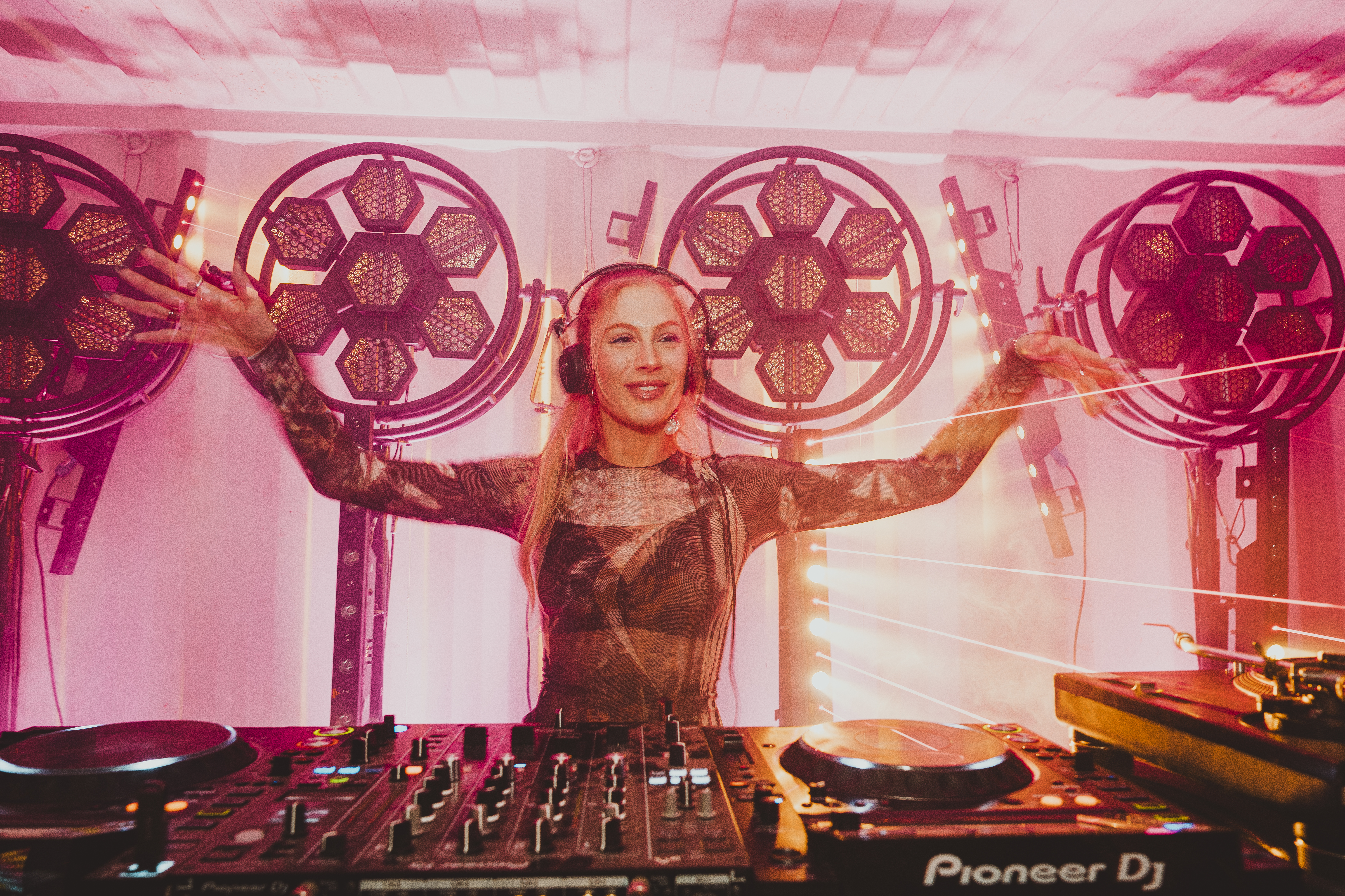 Sparkling and spontaneous, armed with a transgenerational vinyl collection celebrating the 90s, her contagious good vibes transcend the crowd, turning each of her performances into a captivating journey through time, genres, and cultures.